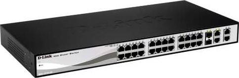 D-Link Fast Ethernet Smart Managed Switches, 24x 10/100BASE-TX PoE, 2x 10/100/1000BASE-T & 2x Combo 10/100/1000BASE-T Interface, 12.8Gbps Switching Capacity, Black | DES-1210-28P/E
