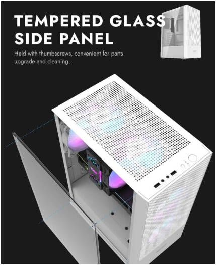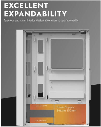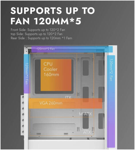 Darkflash A290 ATX Computer Case, 0.5 SPCC / Tempered Glass Side Panel, 3x Pre-installed Fan, 7 Expansion Slots, Supports Up To 5* 120mm Fan Size, USB 3.0 Included, 160mm CPU Height, White | A290-WH
