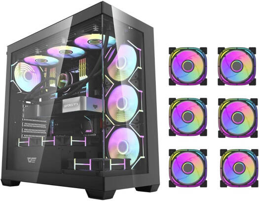 DarkFlash DS900 ATX Computer Case, 6x Pre-Installed aRGB Fans, Up to 360mm Radiator & 10x Fans Support, SPCC + Tempered Glass Materials, USB-C / USB-A x2 / HD Audio Ports, Black | DS900-B