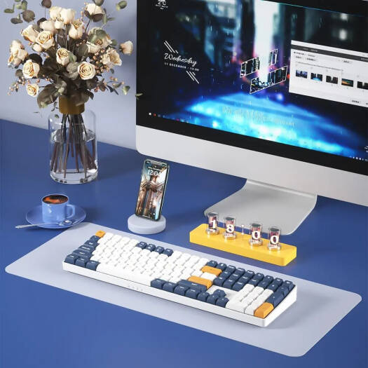 DarkFlash GD108 Mechanical Keyboard, 110 Keys, Wired + 2.4G Dual Mode Connectivity, PBT Dual Colors Keycaps, Anti-Ghosting, Supports Hot Swapping, English Layout, USB-C, Starry Blue | GD108