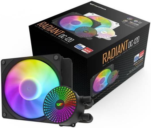DarkFlash Radiant DC 120 ARGB Liquid CPU Cooler, Supports Both Intel and AMD, 330mm Pipe Length, 3200 RPM Speed, 84.2CFM Airflow, 7.20W Power Consumption, Black | DC-120-Black