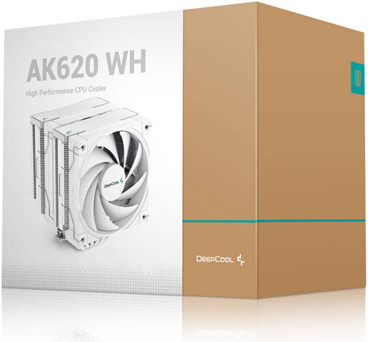 DeepCool AK620 High Performance Dual Tower CPU Cooler, 500-1850 RPM Fan Speed, 68.99 CFM Airflow, 4 Pin PWM Connector, Fluid Dymanic Bearing, 12 VDC Voltage, White | R-AK620-WHNNMT-G-1