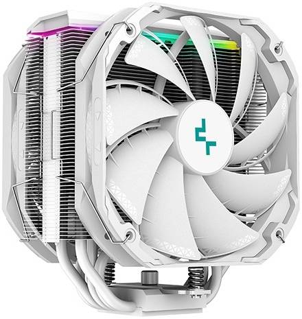 DeepCool AS500 PLUS Single Tower CPU Cooler, 5 Heat Pipe Design, 2x 140mm TF140S PWM Fans, 500~1200 RPM Speed, 70.81 CFM Airflow, ARGB LED, LGA2066/2011-v3/ AM4/AM3+/AM3, White | R-AS500-WHNLMP-G