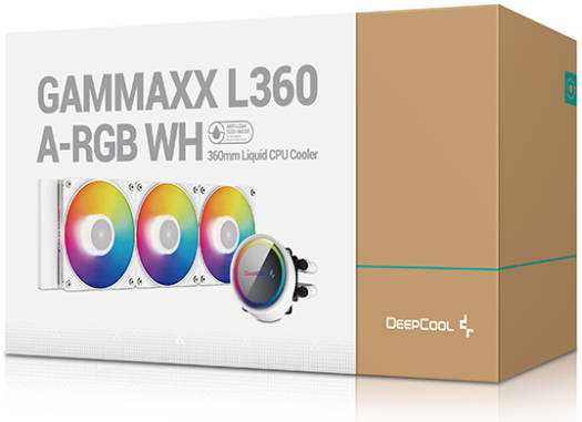 Deepcool Gammax L360 A-RGB WH AIO Liquid Cooler, 500-1800 RPM Fan Speed, 69.34 CFM Airflow, Hydro Bearing, 4 Pin PWM Fan Connector, 12 VDC Rated Voltage, White | DP-H12CF-GL360-ARGB-WH