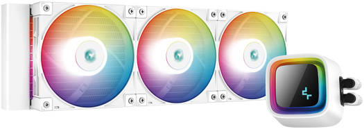 The DeepCool LS720 premium liquid CPU cooler maximizes cooling performance and low-noise efficiency with a 360mm radiator, three FC120 A-RGB PWM fans, and an infinity mirror cap design. A NEW ERA OF DEEPCOOL Built on our 4th Generation high-performance water pump that maximizes cooling performance featuring: 1 Improved microchannel design ensures optimal coolant flow. 2 Powerful three-phase drive motor up to 3100 RPM. 3 Thick solid copper base with a seamless match. COOL AND QUIET Get treated to excellent cooling and superb silent efficiency with the included FC120 fans boasting enhanced static pressure, concentrated airflow, and a fluid dynamic bearings. SIMPLE AND SECURE Installation is quick and easy with newly designed mounting brackets that keep your cooler fastened safely on both Intel and AMD platforms. INTEL LGA2066/2011-v3/2011/170