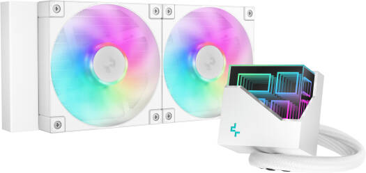 LT240 WH ARGB The LT240 WH ARGB is a high-performance liquid CPU cooler that has been upgraded to DeepCool’s chart-topping 5th generation pump and provides strong heat dissipation power with a 240mm radiator, two precision-tuned FD12 ARGB fans, and a multidimensional infinity mirror top cap, presented in a clean all-white design. Specifications Net Weight 1504 g Radiator Dimensions 282 × 120 × 27 mm (L × W × H) SKU: SKU-55ED3F21 Category: Liquid CPU Coolers Brand: Deepcool