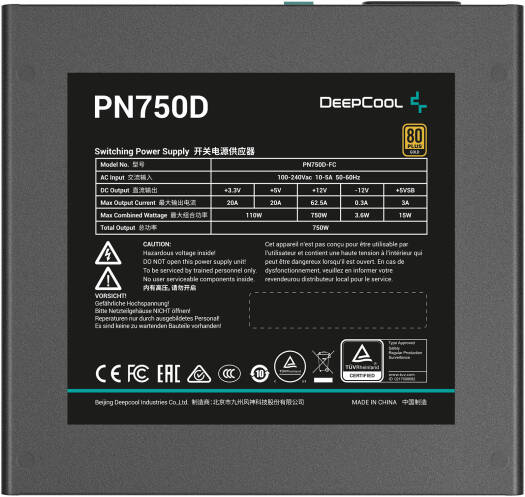 DeepCool PN750D Non-Modular Power Supply, 750W Power, 80 Plus Gold Certified, Active PFC + Full Bridge SRC LLC + DC to DC, Hydro Bearing, 120mm Fan Size, Black | R-PN750D-FC0B-UK