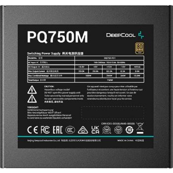 Deepcool PQ750M 80+ Gold Modular Power Supply, 750 Watts, 120mm Fan Size, 50/60 Hz Input Frequency, Active PFC + Full Bridge SRC LLC + DC to DC, Full Dynamic Bearing, Black | R-PQ750M-FA0B-UK