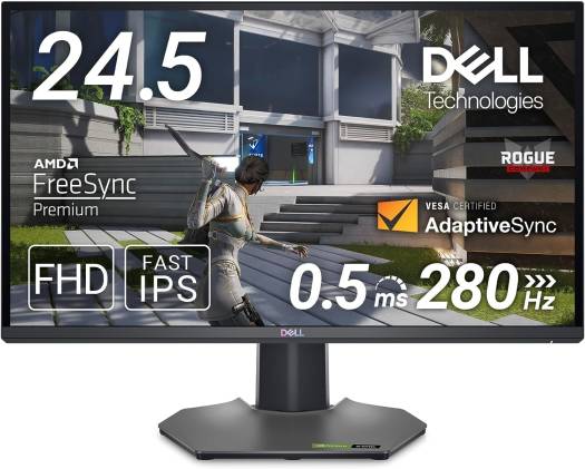 Dell G2524H 24.5″ FHD Fast IPS Gaming Monitor, 280Hz (OC) Refresh Rate & 0.5ms (GtoG), AMD FreeSync Premium, NVIDIA G-SYNC Compatible, 99% sRGB, 2x DP 1.4, HDMI, 3x USB, Black | G2524H