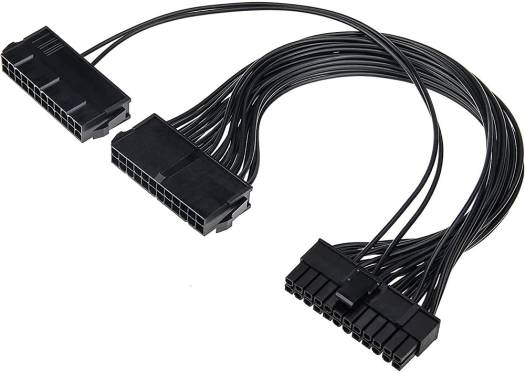 DKURVE Dual Power Supply 24-Pin ATX Motherboard Adapter Cable, 1x 24p (20+4) Male Port and 2x 24P Female Ports, Compatible with 24P and 20P ATX Motherboards Cable, 30cm, Black | DKSATAC0001