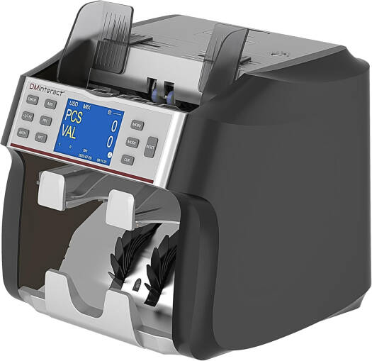 DMInteract DM-1000, Money Counting Machine, Built-In Receipt Printer, External Display, Currency Sorter, Black | DM-1000