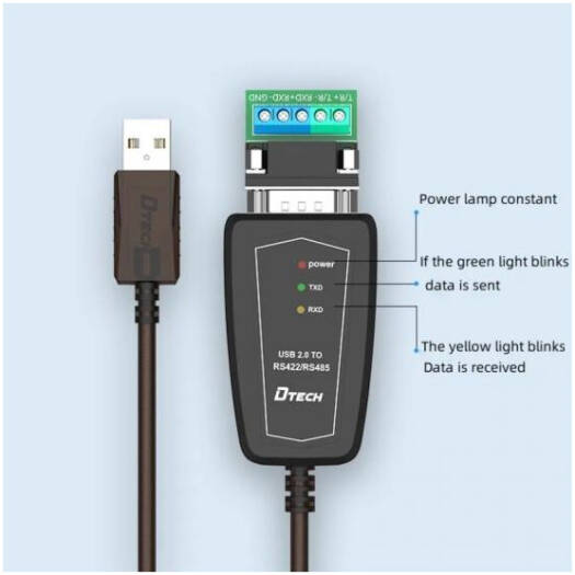 DTECH DT-5019 (2nd) USB A Male to RS485 RS422 Serial Adapter Converter Cable, Signal Indication, 300bps-3000000bps Communication Speed, 0.5 Meter Cable Length, Black | DT-5019(2ND)