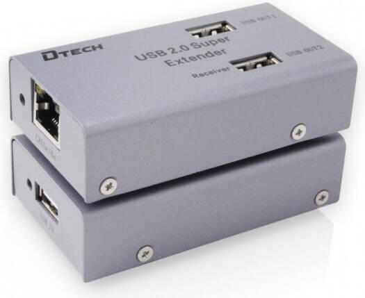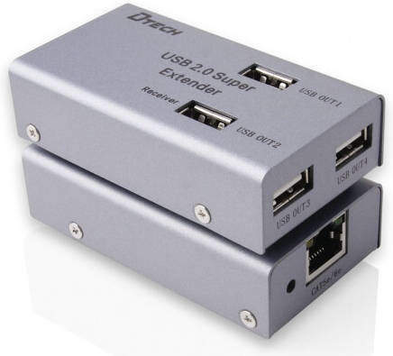 DTECH DT-7014A USB 2.0 Extender, Up To 480Mbps Transfer Rate, CAT5/CAT5E & CAT6, 4 Ports, 1000mA External Power Supply, Up To 50m via LAN Cable, Silver | DT-7014A