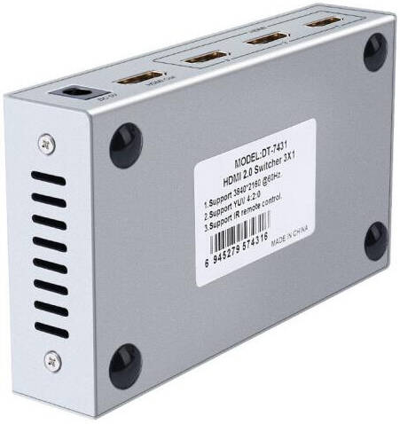 DTECH DT-7431 HDMI Switcher, 3840×2160@60Hz Resolution, Free Driver, Plug & Play, 3 Ports, 10m Input Transmission Distance, 5m Output Transmission Distance, HDMI 2.0, Silver | DT-7431