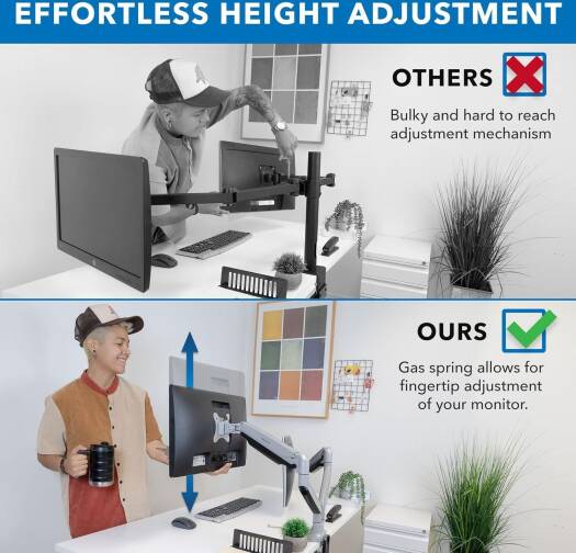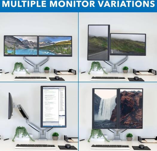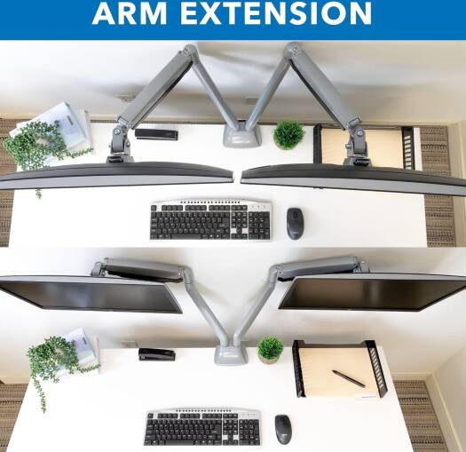 Dual Monitor Desk Mount Arm, Height Adjustable Full Motion Monitor Stand With Gas Spring Arms, Fits 13-32 Inch Computer Screens