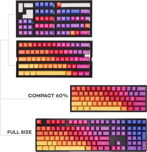 Ducky 108 ABS Doubleshot Afterglow SA Keycaps, Set For Keyboards or MX Compatible, Standard US Layout, 108 Keys, USB Connectivity, Red / Orange / Purple | DKSA108-USADZZWSG