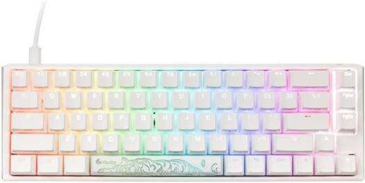 Ducky One 3 65% Mechanical Keyboard – Pure White SF form factor gaming keyboard (65%) with English – Arabic layout High-quality mechanical switches: Cherry MX Red Replace switches without soldering thanks to Kailh sockets Durable double-shot keycaps made of PBT plastic Stylish RGB lighting with 16.7 million colours and numerous effects Reliable inputs thanks to N-key rollover and anti-ghosting Multi-layered damping for a smooth sound with every keystroke USB-C port and detachable USB connection cable (type A) Macro and multimedia functions via double assignment The Ducky One 3 at a Glance The Ducky One 3 mechanical gaming keyboard is designed to give you the best typing experience possible. With a high-quality finish and trimmed for short response times, the Ducky One 3 offer