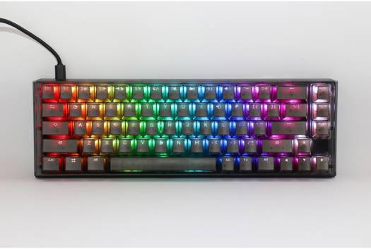 One 3 SF Aura Hot swappable PCB. Exclusive Yellow Kailh Sockets ,Q- Bounce Synthetic Pad EVA Sound Dampener,Remapped Macro Layout. Detachable Braided Type C USB Cable, Low Profile Stability Housing. PBT Double shot Seamless Keycap SF 65% Cherry Brown