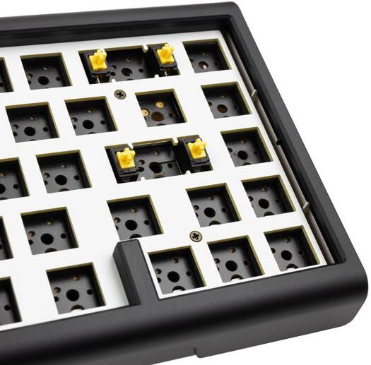 Tinker65 Barebone Start your ultimate keyboard project with the Ducky ProjectD Tinker65 Barebone keyboard. This mechanical barebone keyboard allows you to customise your own keyboard from scratch. Since neither keycaps nor switches are included , you have the freedom to choose the keycaps and switches that suit your preferences for building your dream keyboard. Specifications Product Number PKTI2367AST Structure Gasket Mount LED RGB Connection interface USB 2.0