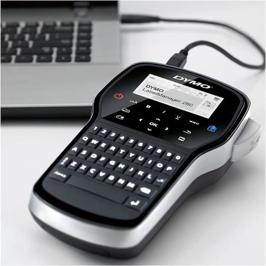 With its convenient rechargeable battery and large graphical display, the DYMO LabelManager 280 offers a portable label-making solution that's ideal for labeling a variety of items at home, school, and the office. It features a computer-style keyboard for easy typing and makes edits easy with its one-touch fast-formatting keys. This handheld label maker also allows you to customize labels with fonts, graphics, and bar codes on your computer using DYMO Label software or just by typing text directly on the unit's keyboard. Label Maker Type: PC-Connectable; Prints Barcodes: No; Prints Postage: No; Power Source(s): AC Adapter (Included); Rechargeable Batteries (Included).