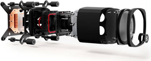 EK-Nucleus AIO CR360 Dark Liquid CUP Cooler, 360mm Radiator, 120mm EK-Loop FPT Fans, 2300 RPM FanSpeed, 72 CFM Airflow, Rotatable Pump Top, Microfin Copper Coldplate, Dark | 3831109900178