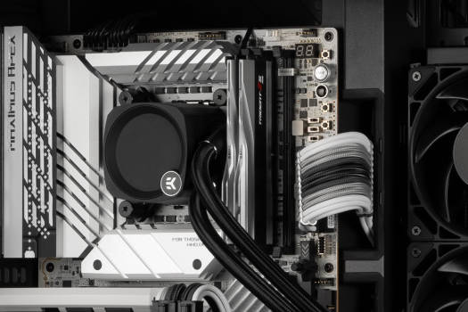 EK-Nucleus AIO CR360 Dark The EK-Nucleus AIO CR360 Dark is an all-in-one liquid cooling solution offering a pitch-black cooler without any RGB. It is designed to fit most of the popular cases on the market today and features a triple fan setup with a slim 360mm radiator. Compatible with most modern processors, it is also ready for the next-gen Intel socket and AMD socket AM5. Rotatable Pump Top The top allows you to re-orient the EK badge no matter in which direction the cooler is installed. The orientation can be changed in 90° increments, so if the cooler is installed upside down, rotate it 180 degrees to display the logo right side up. Regardless of the angle needed to install the AIO, it will always offer clean and aligned aesthetics.