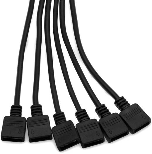 EKWB EK-D-RGB 6-way Splitter Cable, Classic 3-Pin RGB Connector, 6x 3-pin RGB Output, 1x 3-pin RGB Input, 300 mm +/- 5 mm Max Length, Black | 3831109821879