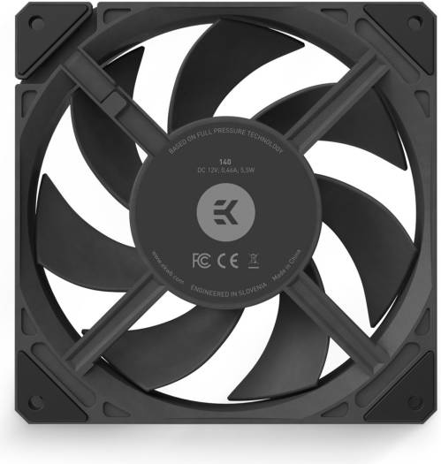 EK-Loop Fan FPT 140 is a 140mm high-static pressure computer cooling fan designed and built primarily for the highest-performance computer liquid cooling systems. FPT series fans aim to succeed the EK-Vardar fans completely, as they improve upon many aspects while maintaining focus on excellent radiator performance. These fans feature an optimized and balanced performance-to-noise ratio on the wide operational range of the fan. Key Features High-static pressure / low noise profile – Unlike other general-purpose computer cooling fans, the EK-Loop Fan FPT 140 fan is built specifically for computer liquid cooling systems, namely radiator cooling. Their design and construction are also very suitable for high-performance air coolers or as case fans for restrictive cases with dust filters. High-quality motor and bearing assembly – Fluid dynamic bearings ensure a long lifespan while its wide RPM range enables silent operation in low-power idle scenarios and high performance during high-load peaks. Precise Pulse Width Modulation (PWM) for fan speed adjustment allows performance on demand. Full Pressure Technology – The