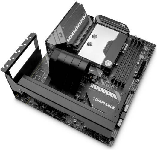 EK-Loop Vertical GPU Holder EVO – Gen4 Riser is a steel mounting bracket with a PCIe 4.0 riser cable that enables the user to mount the GPU vertically and show it off. Displaying your water-cooled graphics card or, alternatively, a GPU with a standard massive air cooler has become more and more popular over the years. One way to do this is to use the special aftermarket brackets that allow mounting the GPU vertically if the case is not already equipped with vertical PCIe slots. However, the user often faces issues with how these solutions work since they don’t offer enough support, allowing the GPU to move around, sag, and stay crooked. This can significantly impair the aesthetics of said PC, which is a major problem as improving the looks is the primary purpose of this bracket. Things can be even more challenging with liquid cooling, especially when installing fittings and tubing to a vertically placed GPU. Not to mention trying to ship a PC with a vertically mounted GPU. Not anymore, as EK’s unique and IP-protected mounting system allows this vertical GPU bracket to screw into two ATX motherboard stand-offs for unparalleled str