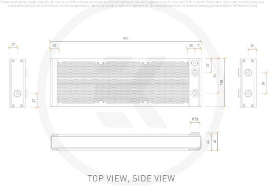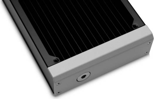 With a thickness of 44mm, the EK-Quantum P Series Surface radiators are the absolute all-rounders for low noise and high performance across the entire fan operational range. Equipped with a total of four G1/4″ threaded connection ports, it provides additional versatility during the loop planning process, while the fifth G1/4″ port located on the end-tank is an irreplaceable feature when it comes to draining the loop and air bleeding. A total of sixteen 2mm-wide copper tubes across the entire radiator length assure optimal coolant flow, putting no stress on your cooling loop. High-grade non-louvered copper fins with 18 FPI density provide the best balance between thermal transfer and air resistance, enabling optimal performance even at low-speed fan operation. To maximize cooling performance, a Push/Pull setup can be utilized on any P Series EK-Quantum Surface radiator. New and Improved The EK-Quantum Surface P series radiator maximizes performance by utilizing a new radiator core. When comparing core to core performance, the Surface P radiator performs up to 10% better than its predecessor, the CoolStream PE, thank