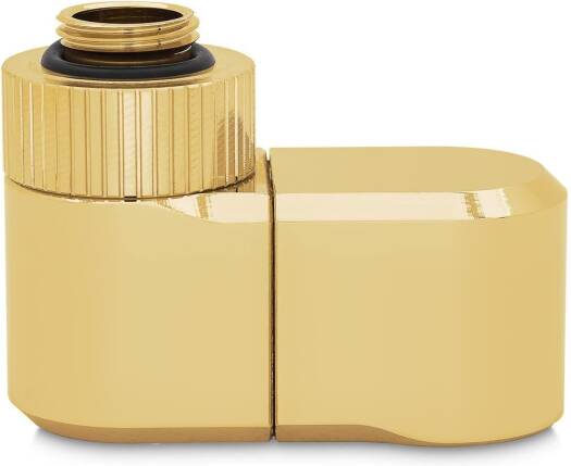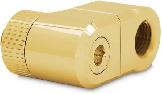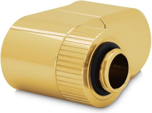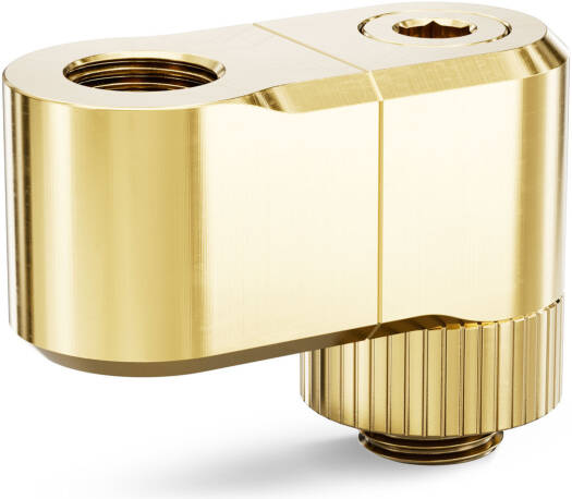 EK-Quantum Torque Double Rotary Offset 28 EK-Quantum Torque Double Rotary Offset 28 – Gold is a premium revolvable male+female threaded 28mm offset adapter fitting with two separate joints, each with its own rotating mechanism. It is commonly used to offset two parallel or perpendicular tubes and is best used on GPU and CPU water blocks to align the tube directly with the distribution plate port. Aesthetically, it perfectly matches the fittings and adapters from the EK-Quantum Torque series. These fittings effectively replace the following three products – the rotaries angled 45 and 90, and a 7 MF extender. Made from CNC machined brass that is treated with nickel plating, followed by plating with genuine gold. Sealed with quality NBR O-rings. Unlike EK’s previous Rotary Offsets for 7 and 14mm, these fittings consist of two pieces and feature a rotating element in the middle as well. This enables them to not only offset the port but also change the angle. There are tactile clicks at every 45–degree turn to easily position the fitting the way your build requir