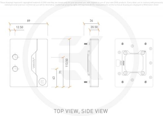 This socket-specific EK-Quantum Velocity² water block is engineered specifically for AMD® AM5 Socket and Ryzen 7000-series CPUs. It is built upon an award-winning, market-recognized platform that has received the IF Design award, European Hardware Award, CES Innovation award, and several other performance review awards as well. With a revolutionary “clean-front” design, with no visible mounting screws, Velocity² water blocks are on the route to outshining their predecessor and taking over the market lead. The featured motherboards on this product page are: GIGABYTE X670E AORUS MASTER MSI MPG X670E CARBON WIFI The EK-Quantum Velocity² D-RGB – AM5 Nickel + Plexi is a high-performance premium quality CPU water block for the AMD AM5 socket platform. It features a next-generation cooling engine that is socket-specific, tailored to the IHS and die layout of Ryzen 7000-series CPUs. This CPU water block is EK-Matrix7 compliant and is mounted via the patent-pending EK Exact Mount system. Socket Spe