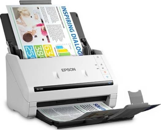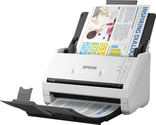 The document scanner that’s the intelligent choice for document management. The fast, efficient DS-530 color duplex document scanner is the intelligent choice for business document management, offering world-class performance at a significant value. Featuring speeds up to 35 ppm/70 ipm 1 , this powerful, compact performer includes TWAIN and ISIS ® drivers for seamless integration with existing document management systems. Quickly scan stacks of pages to a PC, Mac ® or online storage account 2 like Dropbox ™ or SharePoint ® . Advanced paper feed technologies such as Dynamic Skew Correction and Ultrasonic Double Feed Detection offer added reliability, while a 50-page Auto Document Feeder saves time. Additional features include Double Feed Detection Skip, Slow Speed Mode and programmable jobs. Resolution : 600 dpi Model: B11B236201