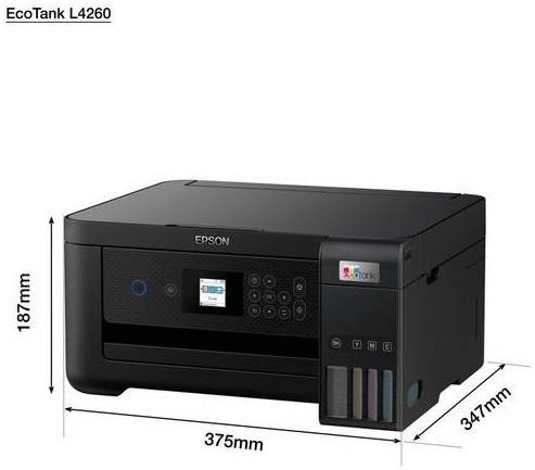 Epson EcoTank L4260 Wi-Fi Duplex AIO Ink Tank Printer, Borderles Printing Up to A4 Size, Auto Duplex, 5760×1440 dpi Resolution, 10.5ipm/5.0ipm Print Speed, Spill-Free Ink Refilling, Black | C11CJ63415
