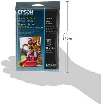Epson Glossy Photo Paper, 255gsm Weight Sturdy, 10×15 cm Size, 20 Sheets, For High Quality Photos, Compatible For All Inkjet Printers | C13S400037