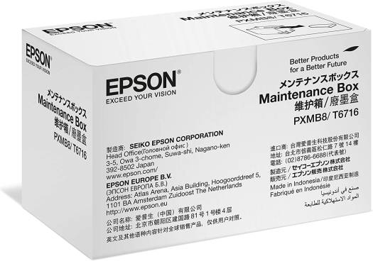 The T6716 Ink Maintenance Box stores ink that gets flushed from the system during print head cleaning. Your printer and its software will let you know when the maintenance box needs to be replaced. C13T671600 Original Epson Maintenance Box Ink maintenance box Printer Accessories Compatible Devices: WorkForce Pro WF-C5210DW/C5290DW/C5710DWF/C5790DWF