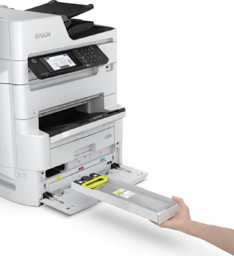 Ideal for environments that demand high productivity and expanded connectivity, the WorkForce Pro WF-C879R color multifunction printer, powered by PrecisionCore Heat-Free TechnologyTM. Its Replaceable Ink Pack System delivers up to 86,000 ISO pages (black) and up to 50,000 ISO pages (color)2, which means fewer interventions. It speeds through professional-quality prints at 26/25 ISO ppm (black/color)†, and scans up to 100 images per minute (duplex)3. With 13″ x 19″ printing, a 1,900-sheet total paper capacity4, and auto duplexing, the WF-C879R has the versatility to streamline workflows for maximum efficiency. And, it features the lowest power consumption in its class. 4-in-1 with Wireless, Ethernet & PCL/PS : Print / Copy / Scan / Fax Low intervention, less hassle Replaceable Ink Pack System lets you print up to 86,000 ISO pages (black) and up to 50,000 ISO pages (color)