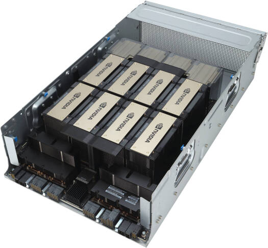 ESC N8-E11V 7U NVIDIA HGX™ H100/H200 eight-GPU server with dual 5th Gen Intel Xeon Scalable processors , designed for large-scale AI and HPC with up to 12 PCIE slots, 32 DIMM, 10 NVMe, dual 10Gb LAN and OCP 3.0 (optional) Specifications System ESC N8-E11V/10G/3KW CPU 2x Intel Xeon Platinum 8568Y+ GPU NV HGX H200-8GPU 141G 700W