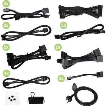 Introducing the EVGA SuperNOVA 1600 P+, the new and improved fully-modular power supply line-up from EVGA with an 80+ Platinum Efficiency rating. These power supplies pick up where the award-winning EVGA 1600 P2 and 1200 P2 power supplies left off and continue the tradition of EVGA quality and performance. Additionally, the SuperNOVA P+ power supplies feature a cleaner internal layout to increase airflow, a Variable Resistor module (to increase voltage stability), two DC to DC modules for more efficient power switching on all models, EVGA ECO Mode, a full suite of power supply protections, and EVGA’s World-Leading Global 10-Year Warranty on all P+ power supplies. CONNECTOR QUANTITY 24 Pin ATX 1x EPS (CPU) 2x 8pin (4+4) PCIe 9x 8pin (6+2), 5x 6pin SATA 14x Four-Pin Peripheral 5x Floppy 2x