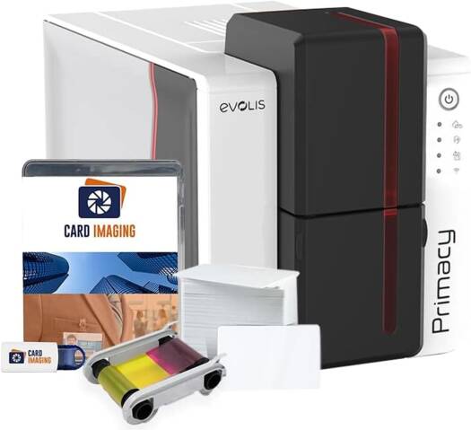 Evolis Primacy 2 Single Sided ID Card Printer & Supplies Bundle Badge Machine (PM2-0001-A)