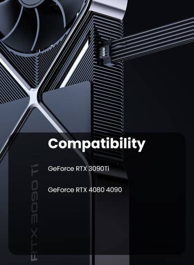 PCI-e 5.0 Extension Cable Compatibility and Requirement Check: Ensure PSU has PCIE 8Pin(6+2) ports. Confirm GPU’s PSU wattage requirement for RTX 4090/4080/3090Ti/4070Ti. Contact support if unsure about compatibility or port type. Avoid forceful plug/unplug actions. Designed for Specific GPUs: Fasgear PCIe 5.0 16(12+4)pin male to 4X8(6+2)pin female sleeved extension cable for GeForce 3090Ti/4080/4090/4070Ti. Not compatible with 12-pin GeForce RTX 3090 Series GPUs, only supports 12+4 pin female GPUs like RTX 3090Ti, RTX 4080, RTX 4090, and RTX 4070Ti. Output Capacity: Supports up to 600W output. Plug terminals made of alloy copper and tinned material for stable higher currents. <