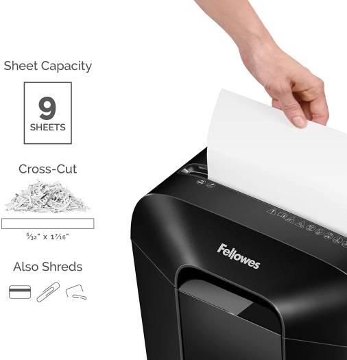 Fellowes Light Duty Cross Cut Shredder, Patented Safety Lock, Shreds 9 Sheets Per Pass, 4.4 Gallon Bin, Medium Use, Quiet Operation, Can Shred Staples / Credit Cards / Paper Clips, Black | LX50