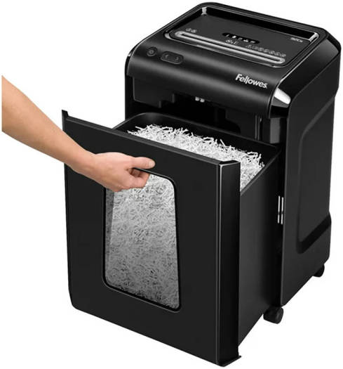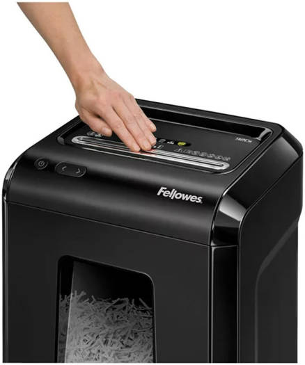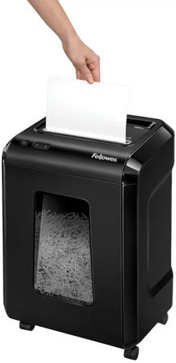 Powershred® 92Cs Cross-Cut Shredder Fellowes Powershred 92CS shreds 18 sheets per pass into level P-4 cross-cut particles to help destroy all information on highly confidential office documents. The heavy duty office shredder has an extended run time of 30 minutes to complete your bulk shred jobs in one sitting. The 7-gallon waste bin keeps your desk and the overall workplace clean. Powershred 92CS cross cut shredder has an auto-reverse feature that pauses and reverses paper if a jam occurs and makes minimal noise while shredding. Fellowes 92CS features SafeSense technology that ensures safe operations by stopping the shredder when hands touch the feed opening. In addition, Sleep Mode saves power consumption by switching to standby after 2 minutes of inactivity.