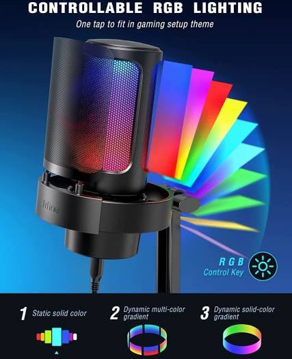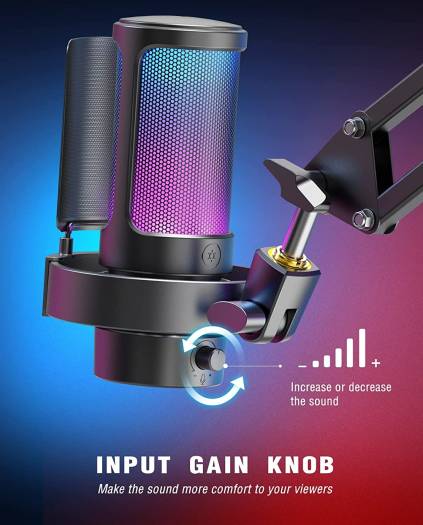 Various and Controllable RGB Three lighting modes on the Fifine USB microphone show you up to 9 kinds of RGB light colors. Worked with RGB stream mic, the RGB control button gives you an easy way to select mode or color to make a difference for game scenes. The aesthetic of the gaming microphone for PC works well with your gamer setup or LED equipment to present pop and visually pleasure. Intuitive Mic Control The 3.5mm headphones jack on the PC microphone allows monitoring if your audio is too quiet or harsh on streaming or Youtube video. You can operate the gain knob instead of MacBook or computer hotkeys to adjust mic volume up to real-time feedback. You can mute the streaming mic with one tap to avoid sneezing into a mess in the game chat room. Clear Sound Quality Condenser mic capsule brings smooth sound with better sensitivity, capturing the vocal voice greatly even soft sound. The cardioid pickup pattern worked with the gaming PC mic reduces most fan or vent noises from your PC tower. The streaming microphone for PC gaming keeps improved sound quality and accurate online chatting with gaming teammates in Discord or Twitch.