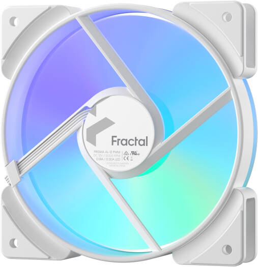 Fractal Design AL-12 Prisma 120mm Addressable RGB PWM Fan, 85.71 CFM Airflow, Up to 2000 RPM, LLS Bearing, 3-Pin RGB Connector, 4-Pin PWM, White | FD-FAN-PRI-AL12-PWM-WT