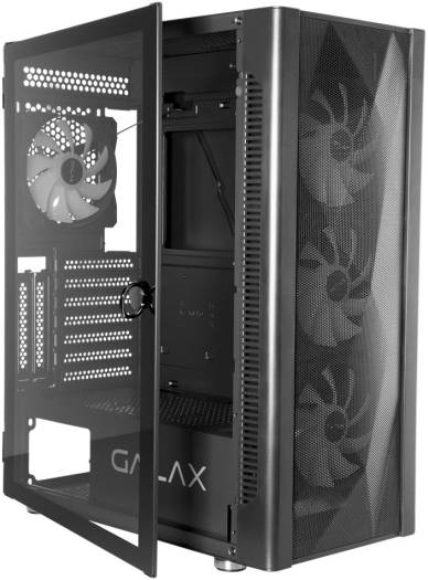GALAX PC Case (REV-06) ATX, M-ATX, ITX Specifications P/N: G-CGG6AGBA4B0-GLXG Color: Black Material: SPCC + Tempered Glass Motherboard support: ATX, M-ATX, ITX PSU format: ATX=160mm=140*150*86mm M/B format: ATX, M-ATX, ITX Panels: – Front: ABS, mesh cover – Upper: Metal cover – Left Side: Tempered