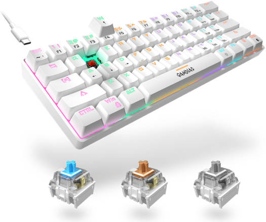 The HERMES E4 is an all-white premium peripheral combo. The combo includes a white multi-color mechanical 61 key form factor keyboard, a precise RGB mouse with an accurate 12800 DPI, and finished with an extended reinforced white mouse pad. Designed with 13 Built-in Vibrant Lighting Effects to illuminate the keyboard and mouse to immerse the game with virtually unlimited lighting which makes your gameplay colorful. The RGB mouse features an advanced optical sensor that adjusts up to 12800 DPI, the precision combined with the weightlessness is perfect for fast-paced combat and the ergonomic design provides you with an unprecedented gaming ambiance. Experience crisp and smooth controls of the white extended mouse Pad neatly stitched together with reinforced fiber. The Gamdias Hermes E4 Combo comes with certified Mechanical switches which deliver quick gaming responses with 50 million lifecycles for each keyboard switch also tapping on Gamdias certified mechanical switches, every click is an amusement.