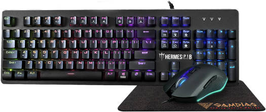 GAMDIAS Hermes P1B 3 In 1 Combo Wired Keyboard / Mouse / Mouse Mat, RGB Mechanical Keyboard, Breath Lighting 3200 DPI Optical Mouse, Non-Slip Gaming Mouse Mat, Ergonomic, Black | GD-P1B-3-IN-1-COMBO