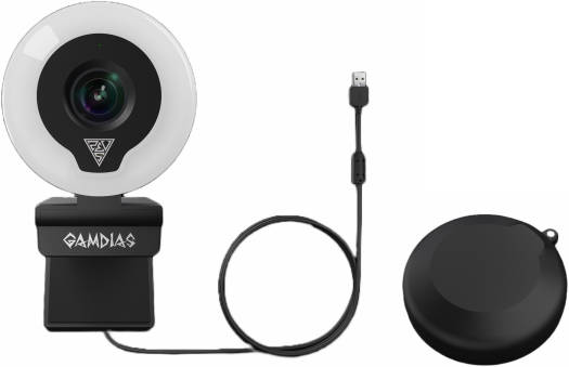 GAMDIAS IRIS M1 FHD 1080p / 60 FPS Streaming Webcam, Rapid Autofocus, Adjustable Ring Light, 3-level Color Temperature & Brightness, Near-Zero Distortion Lens, White-Black | GD-IRIS-M1