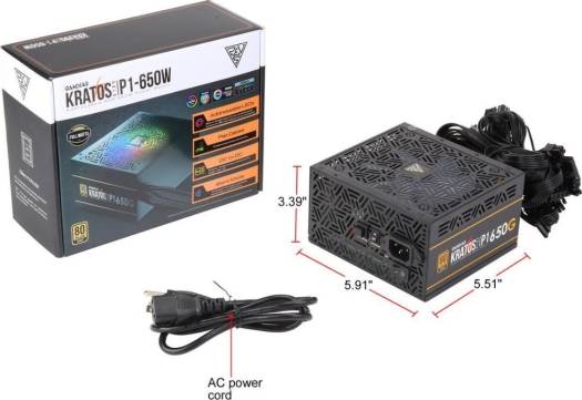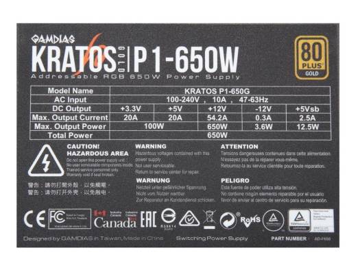 Gamdias Kratos P1-650G 650W ATX12V v2.4 80 PLUS GOLD Certified Non-Modular Active PFC Power Supply with Built-in RGB Lighting Effects and Addressable LEDs | Kratos P1-650G